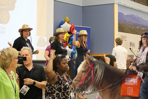 | DEN Stars voted for this year's mascot (Matt Monjan dressed in a costume.) Sweetie was so excited to find out the mascot was a horse!  |
